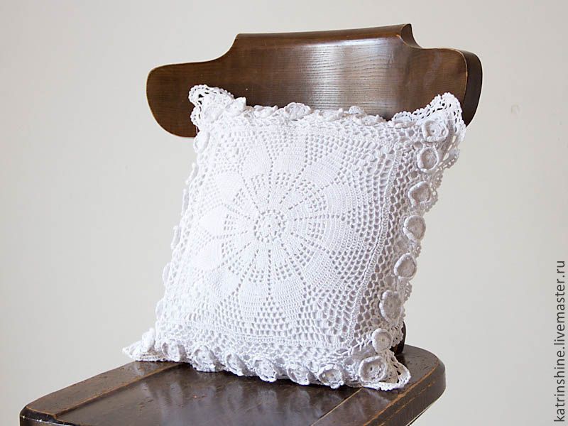 Винтажная вязаная крючком белая наволочка - винтажный стиль,украшение интерьера