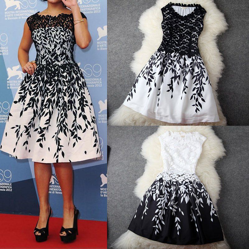 dress code dresses Picture - More Detailed Picture about Dresses New Fashion 2014 Summer Designer Black And White Leaf Print Embroidered Lace Brand Dress European Style High Street Silk Picture in Dresses from GaGa-Mart | Aliexpress.com | Alibaba Group