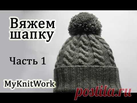 Как вязать шапку спицами. Вяжем шапку с бубоном. How to knit a hat spokes. Knit cap with a bubo.