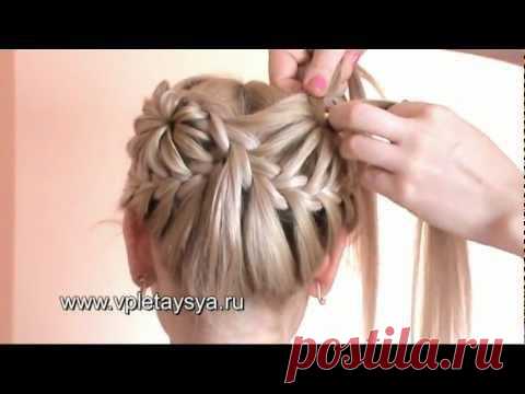 Причёска из косичек в виде двух цветков