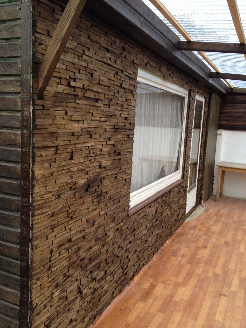 Идея отделки стены деревянной мозаикой. Дачный вариант | Самоделкино
