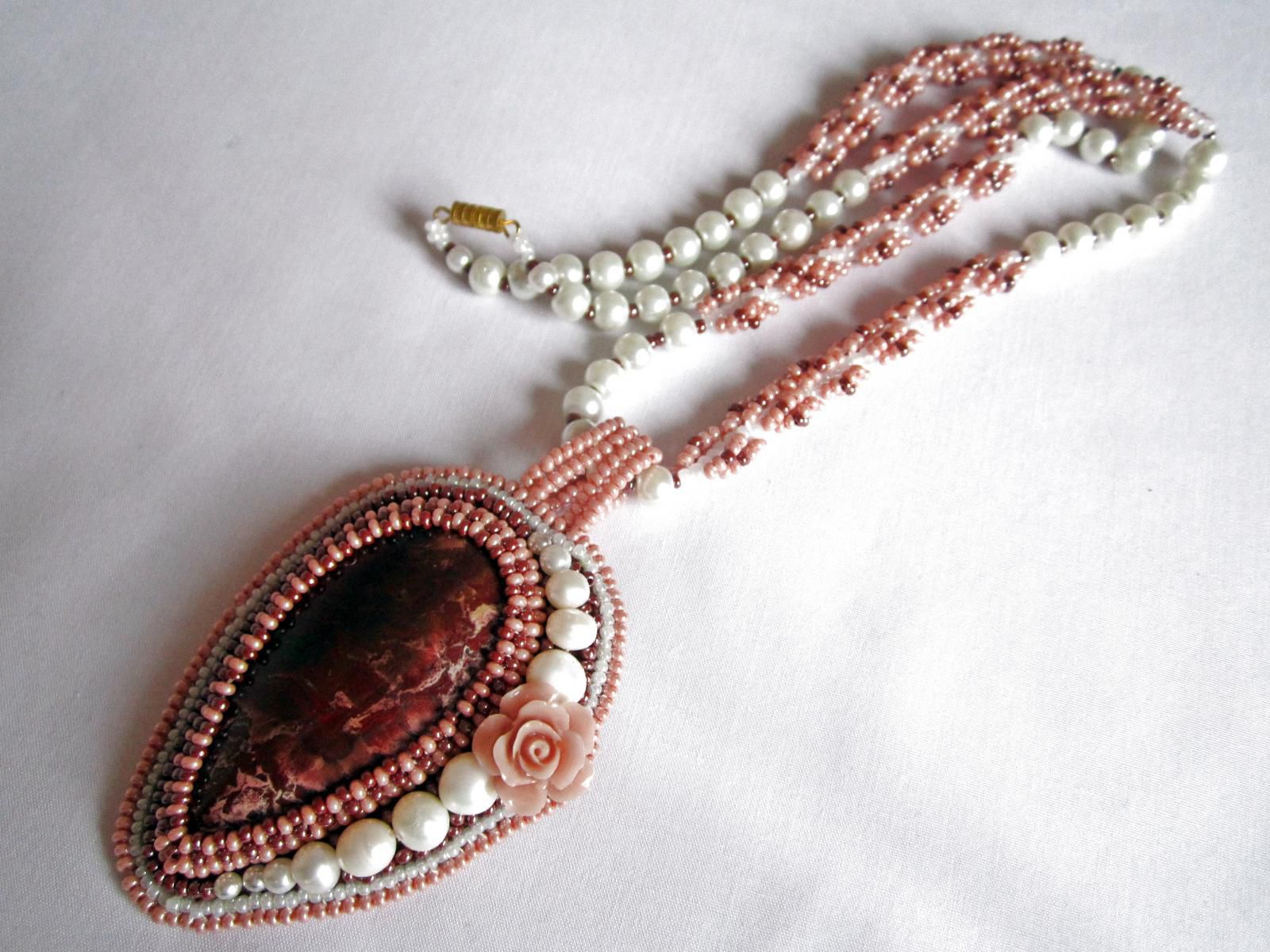 "Романтичные" кулоны с яшмой | biser.info - всё о бисере и бисерном творчестве