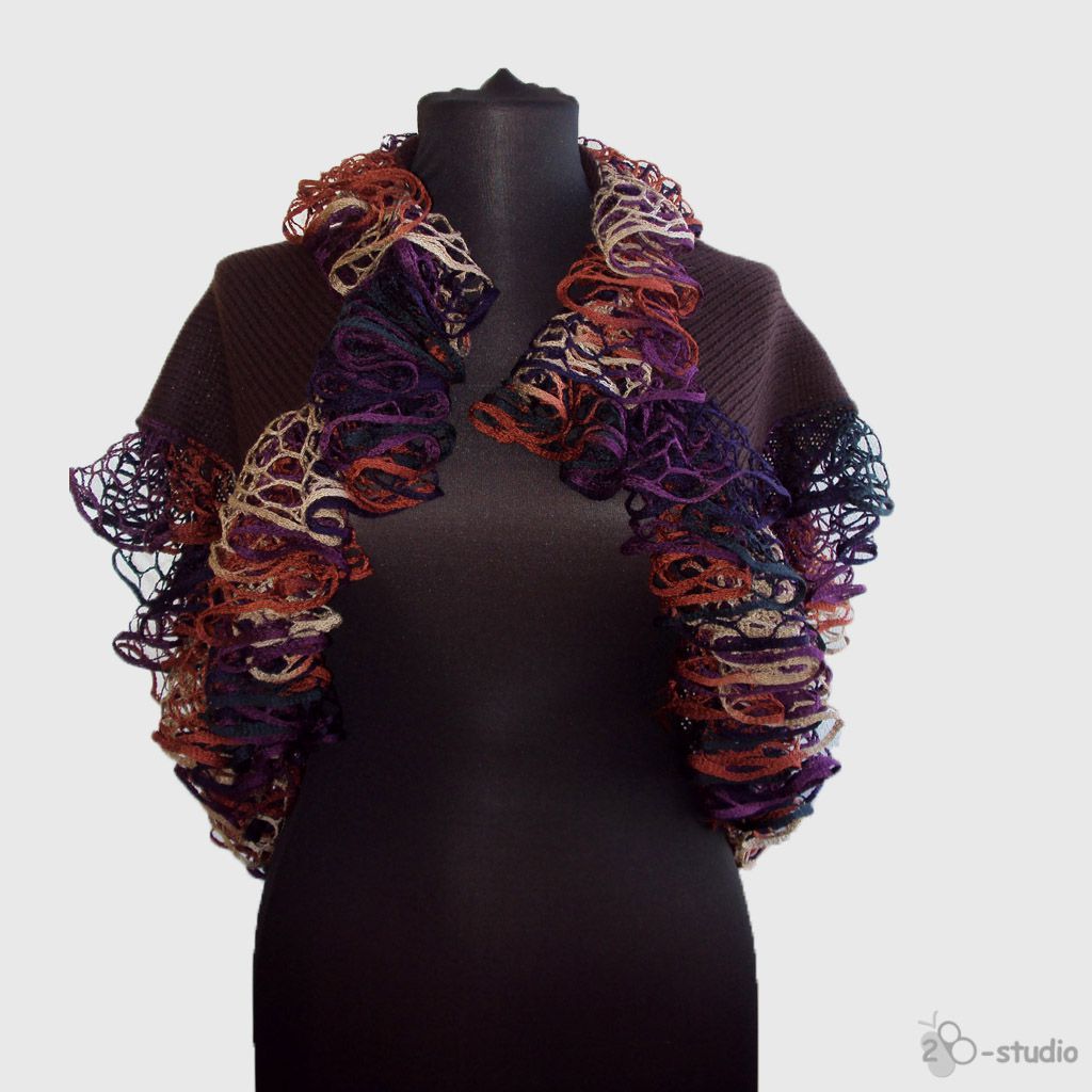2b-studio Вязаные трансформеры и одежда для полных женщин, для будущих мам и для креативных натур!: Болеро «Мехико» с воланами из ленточной пряжи. Мастер-класс