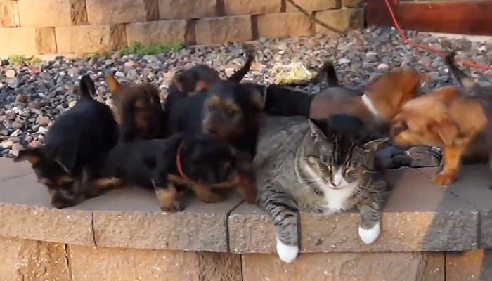 Забавное видео: 9 щенков атаковали кота | Вокруг света | Среда обитания