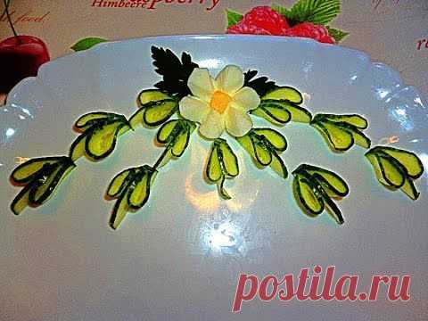 Цветы из яйца и листья из огурца! Flowers of eggs! Украшения тарелки! Decoration of cucumber!