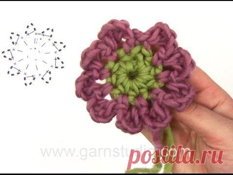 DROPS Crocheting Tutorial: How to work an Aster flower.