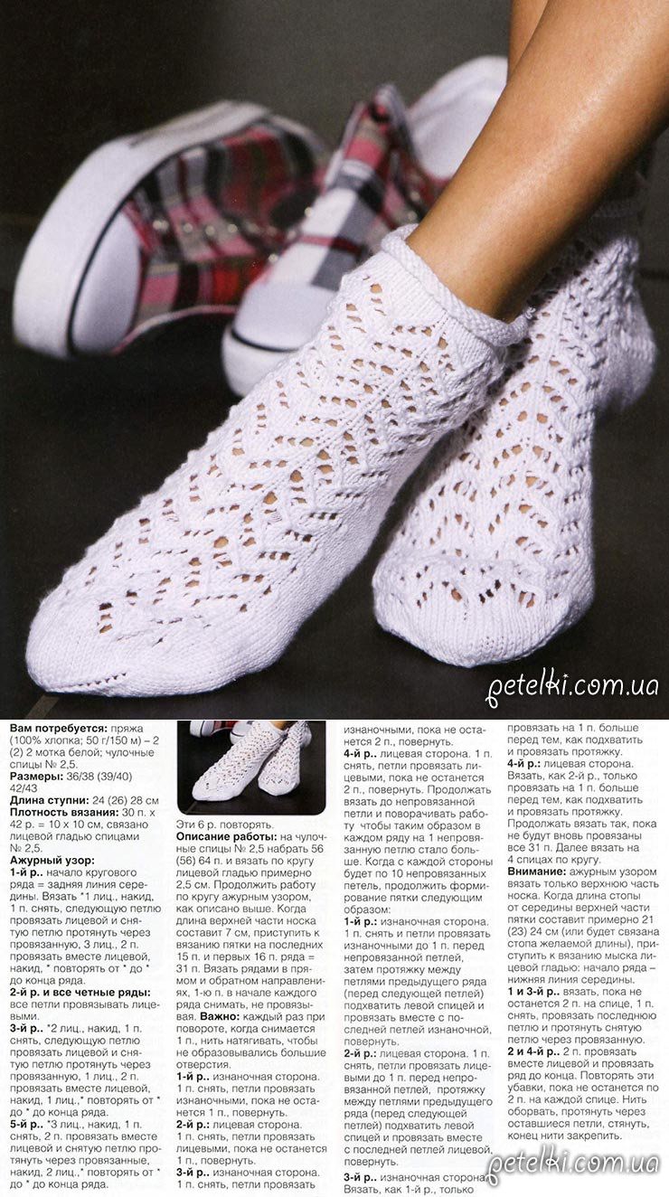 Ажурные носочки спицами. Описание вязания
