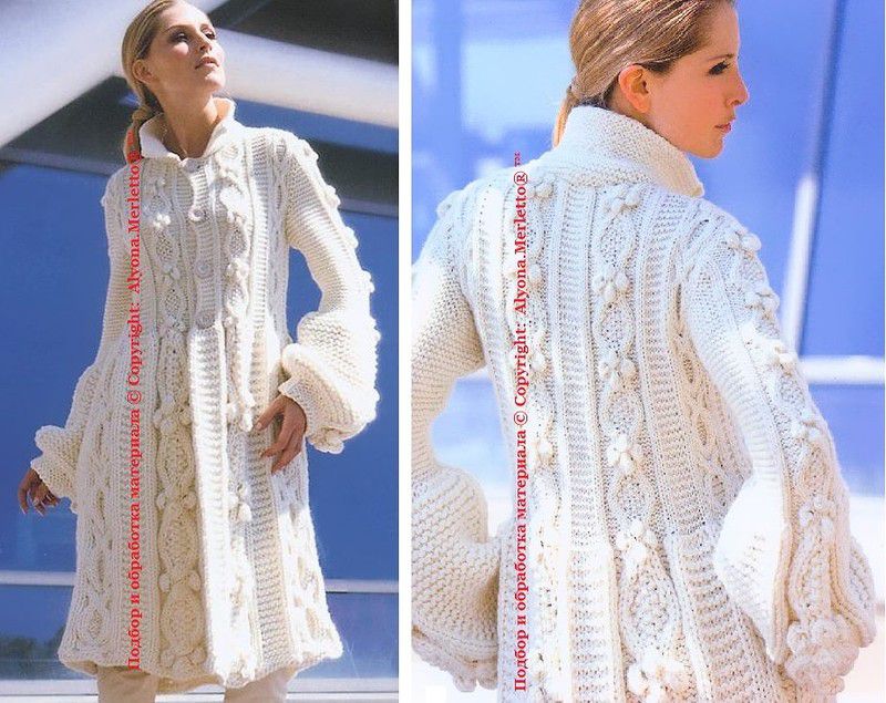 Обворожительное белое пальто спицами ...от Phildar (Франция) ...с полным переводом