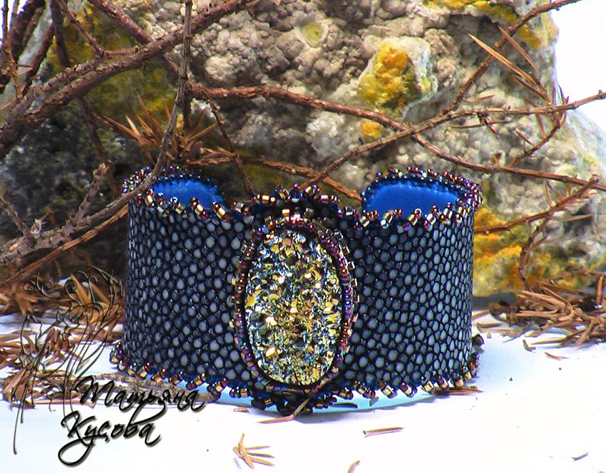 Браслет из кожи ската "Индиго" | biser.info - всё о бисере и бисерном творчестве