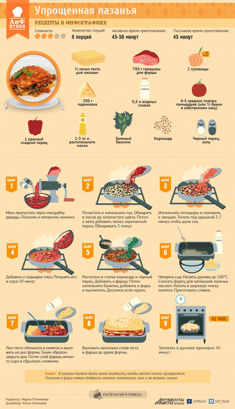 Простой рецепт лазаньи с мясом | Рецепты в инфографике | Кухня | Аргументы и Факты