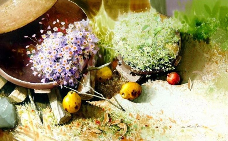Корейский акварелист Shin Jong Sik. Натюрморт акварелью | Usenkomaxim.ru