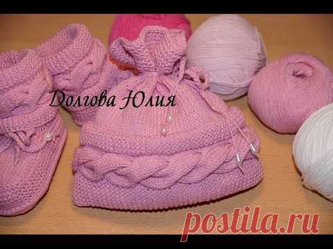 Вязание спицами. Шапочка со жгутом / косами //// Knitting. Cap with braid / braids for children