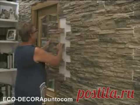 Montaje de paneles imitación piedra ECO-DECORA en paredes interiores y exteriores - YouTube