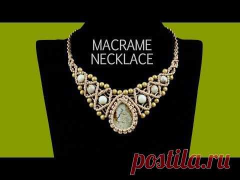 Macrame Necklace with Stone and Beads - Tutorial - YouTube