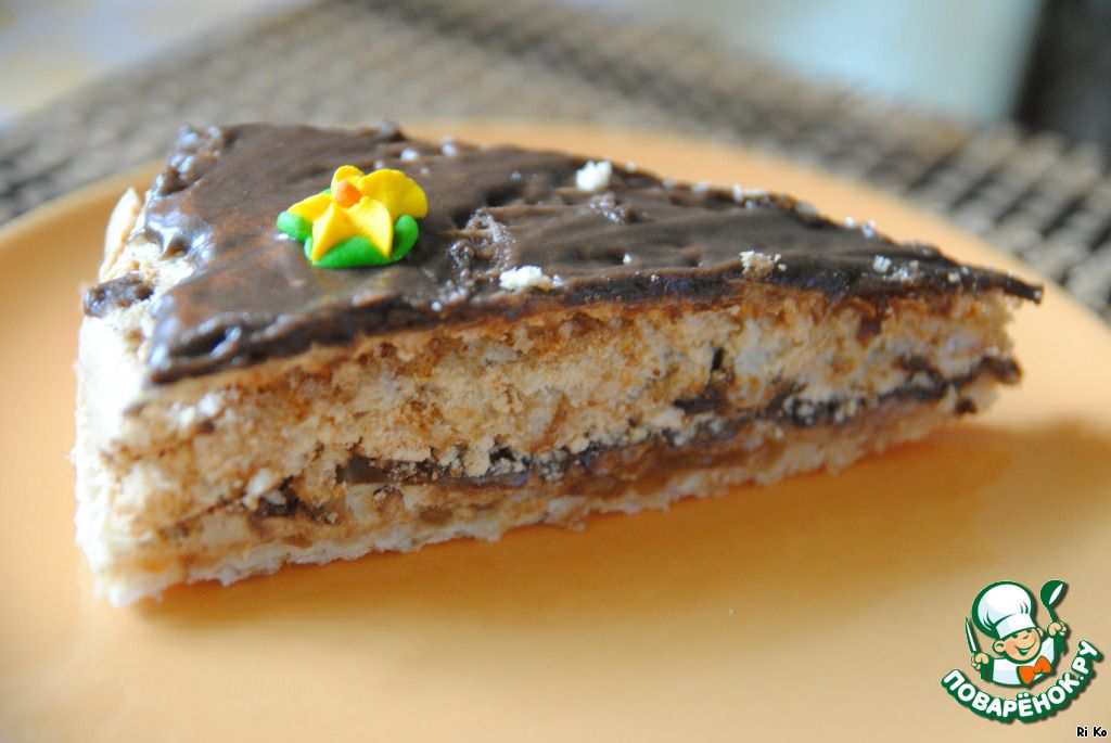 - Готовое безе аккуратно вынуть и положить на стол, еще горячее безе накрыть вторым вафельным листом и быстро перевернуть. Охладить. Пока остывает, приготовить глазурь (я всегда готовлю по одному рецепту: https://www.povarenok.ru/recipes/show/55348/). Охлажденный пирог покрыть глазурью. Украсить по желанию - у меня сахарные цветочки