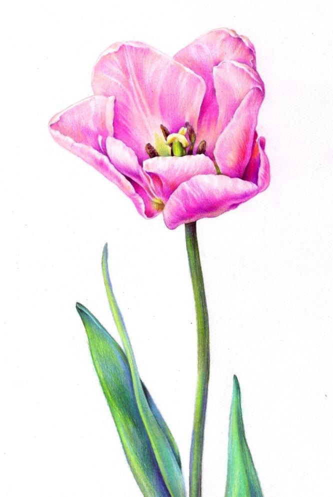 ORIGINAL Colored Pencil Drawing "Tulip", Illustration, Pink Tulip, 10"x8"
