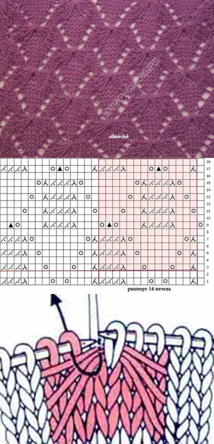 Узор "летучая мышь"........1 петлю снять как лицевую не провязывая, рабочая нить перед работой.............