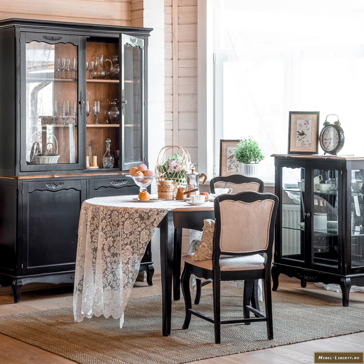 Коллекция «Нуар» — это черная мебель в стиле Прованс, модели такие же, как и в коллекции «Беж» только в черном цвете, это позволит вам оформить ваш дом в разной цветовой гамме.