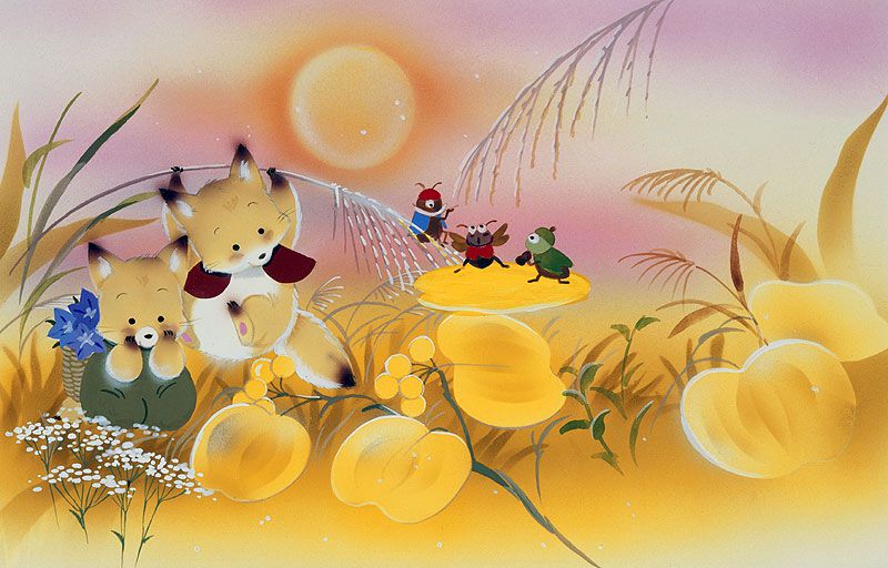Иллюстрации животных осень поле Луны, лиса братья и насекомые US