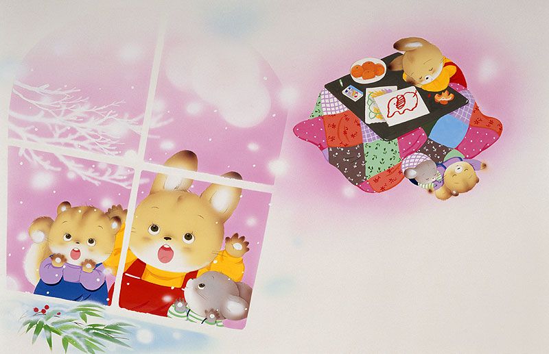 И кролик Посмотреть животное иллюстраций снег, кролик дремал в котацу