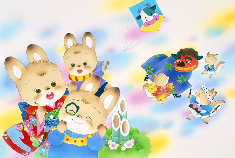 Животных иллюстрации Новый год, месяц крылья, кролики, которые воздушных змеев