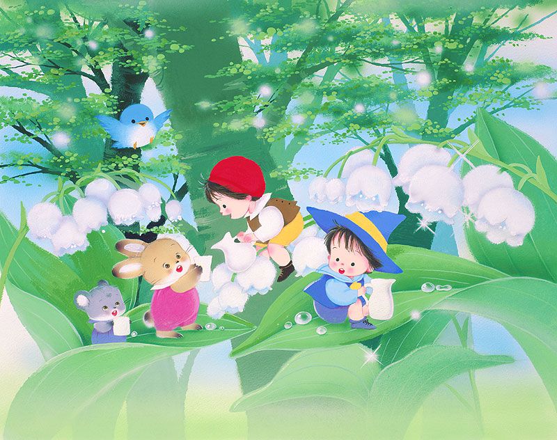 Животные, которые получили утреннюю росу ландыша в сказочный иллюстраций животных