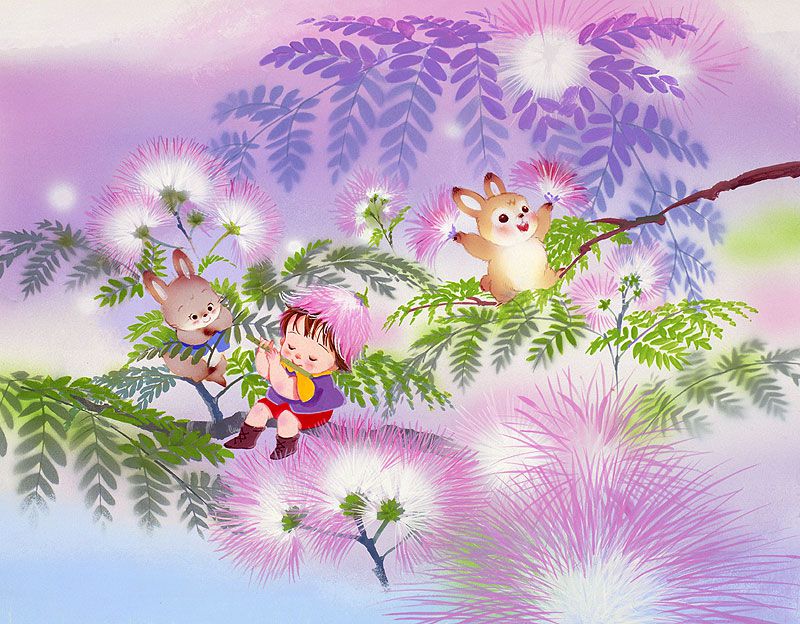 Феи и кроликов, которые играют на иллюстрациях животных Nemunoki