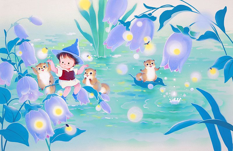 Цветение в иллюстрациях береговой животных Hotarukusa, светлячка и резвиться фея и белка
