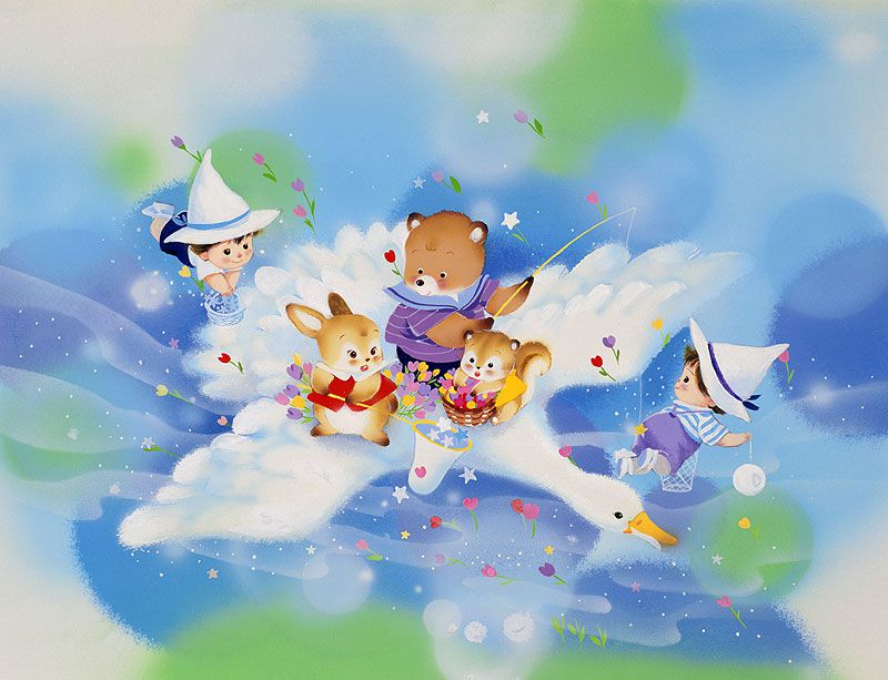 Кролик, кто играет с феей и звездное небо прогулки и поездки к иллюстрациям животных лебедь