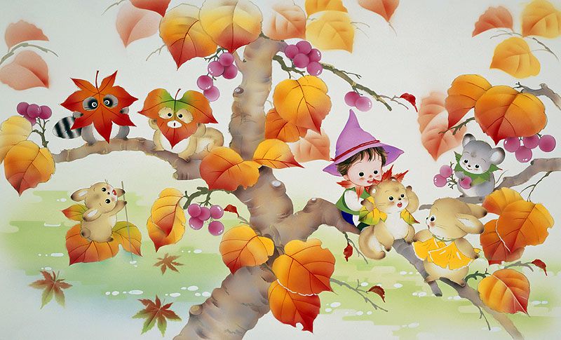 Животное иллюстрации осень, сказочные и животных, чтобы играть с реальными Murasakishikibu