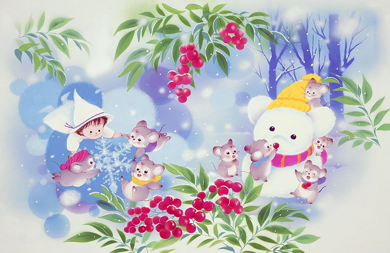 Фея и крысы, которые делают снеговик под животного иллюстраций южный