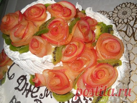 Украшение блюд. Розы из яблок. - YouTube