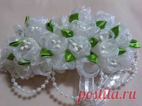 Нежная летняя повязка "Поленька" / Цветок канзаши kanzashi flowers - - YouTube