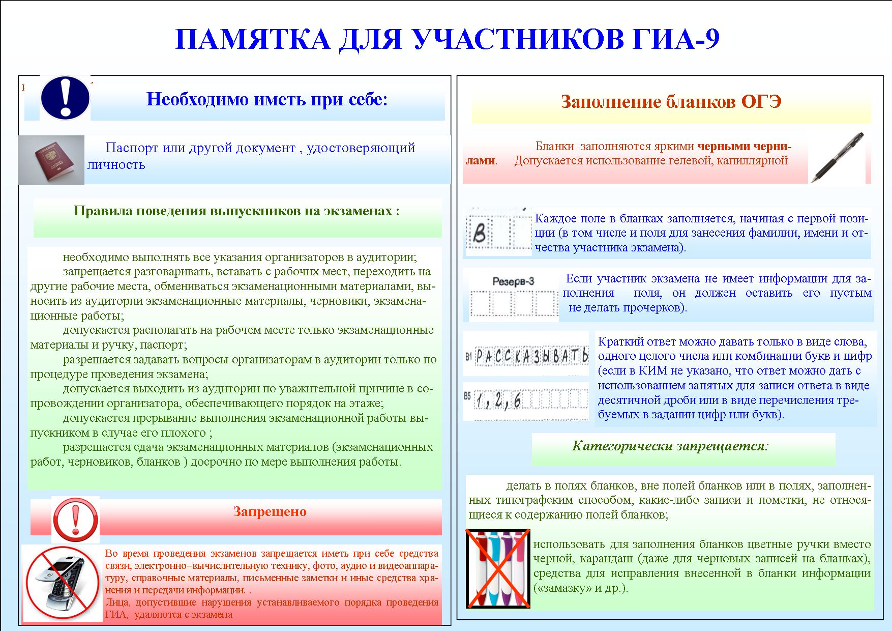Памятка ОГЭ / ЕГЭ и ОГЭ / Школа интернат №19 РЖД