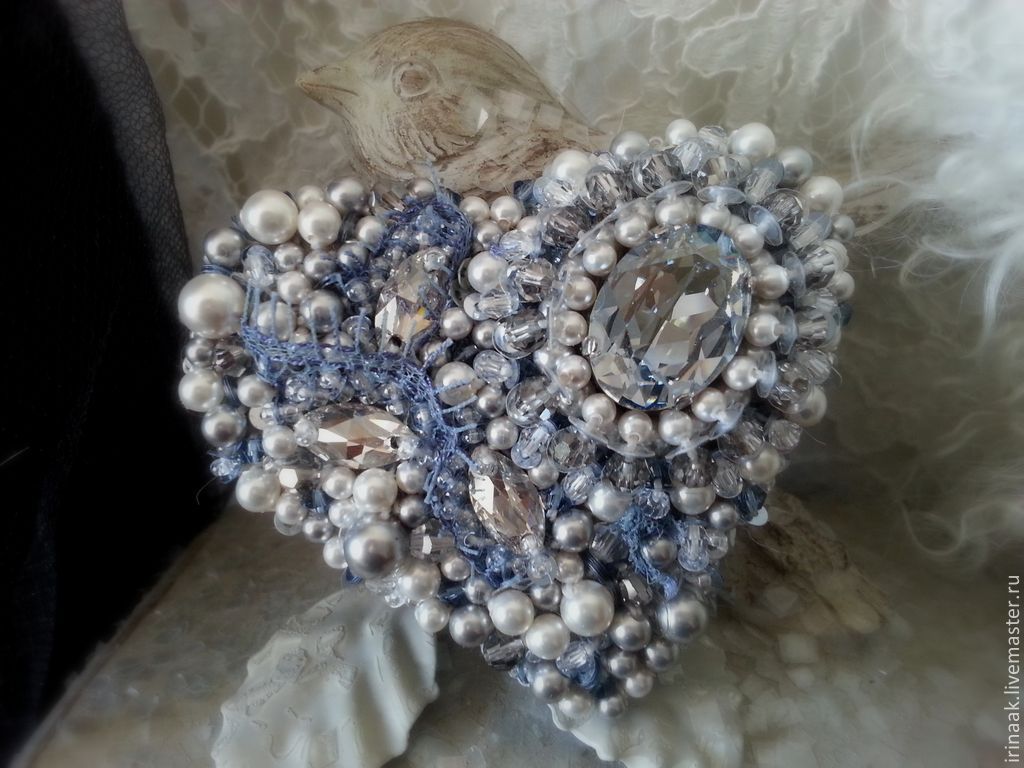 Брошь "Зима" 0214 - голубой,нежно-голубой,белый,кремовый,сердечко,брошь-сердечко