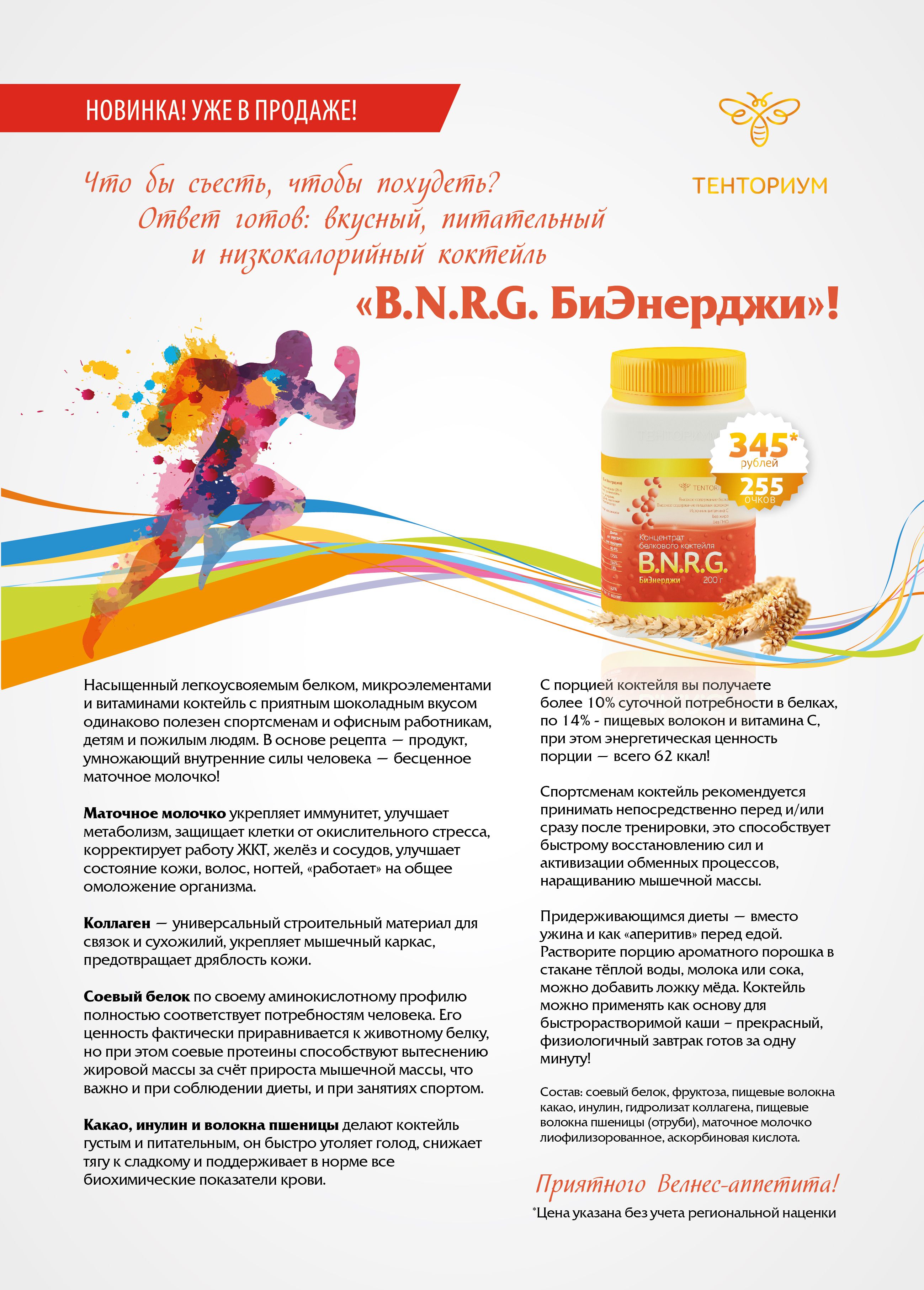 Коктейль «B.N.R.G. БиЭнерджи» незаменим для людей, активно занимающихся спортом и желающих продлить молодость