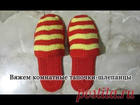 Тапочки крючком. Тапочки-шлепанцы на войлочной подошве. crochet slippers