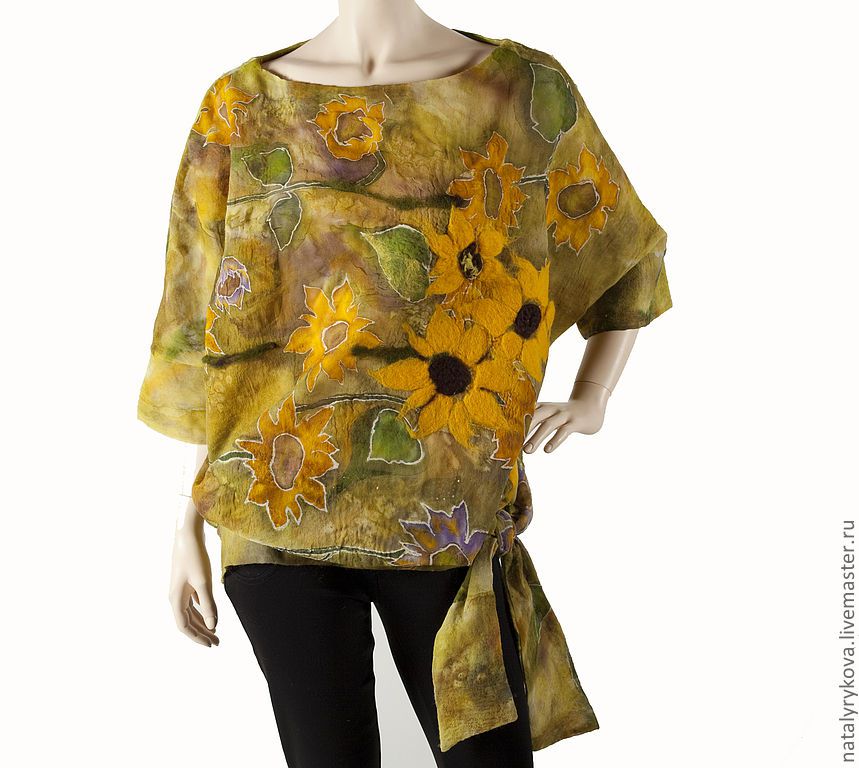 "Подсолнухи"  батик на шифоне+нунофелтинг - блузка,блузка женская