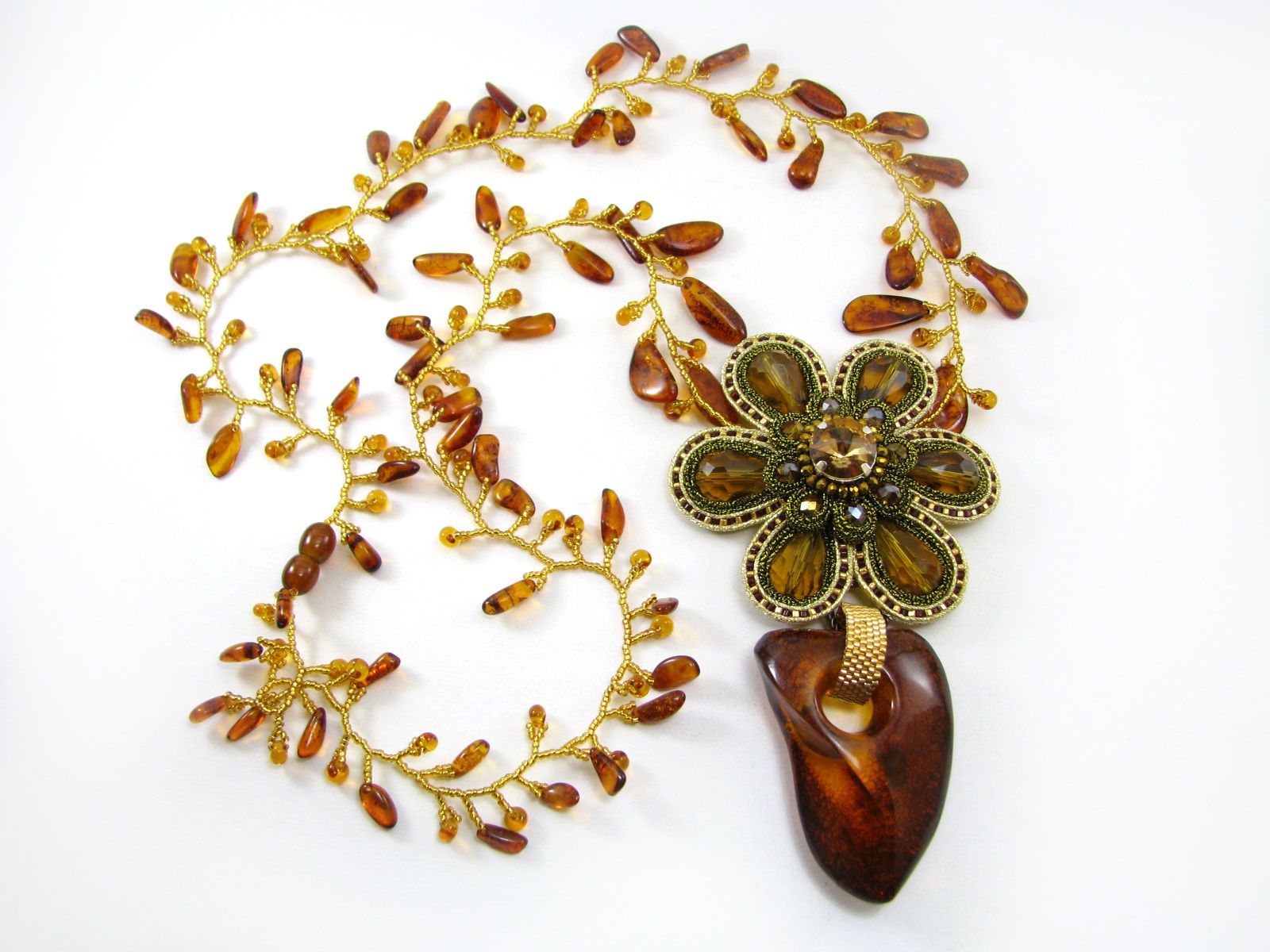 Кулон сутажный "Янтарный цветок" | biser.info - всё о бисере и бисерном творчестве