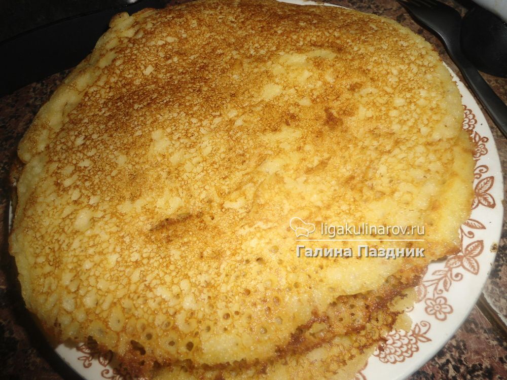 Блины из кукурузной на кефире, рецепт пошаговый от Лиги Кулинаров. Рецепт блинов из кукурузной муки на кефире, рецепты Лиги Кулинаров.