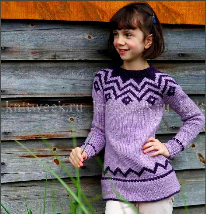 Туника спицами с геометричным узором 4 (6, 8, 10) лет