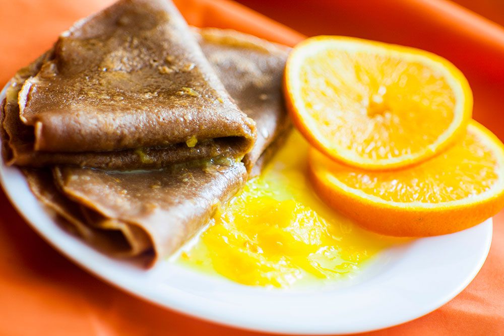 Рецепт шоколадных блинов с апельсиновым соусом