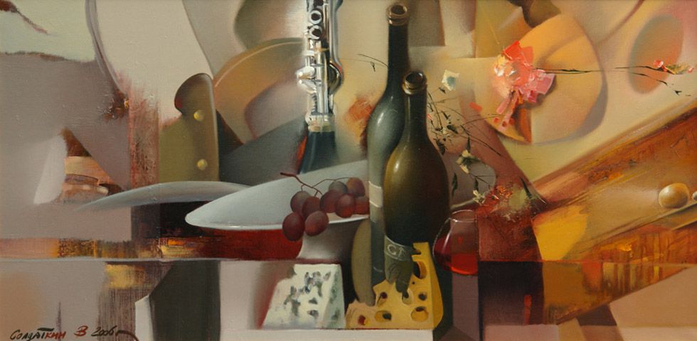 Натюрморт с сыром и кларнетом - Владимир Солдаткин - Картины и другие произведения изобразительного искусства