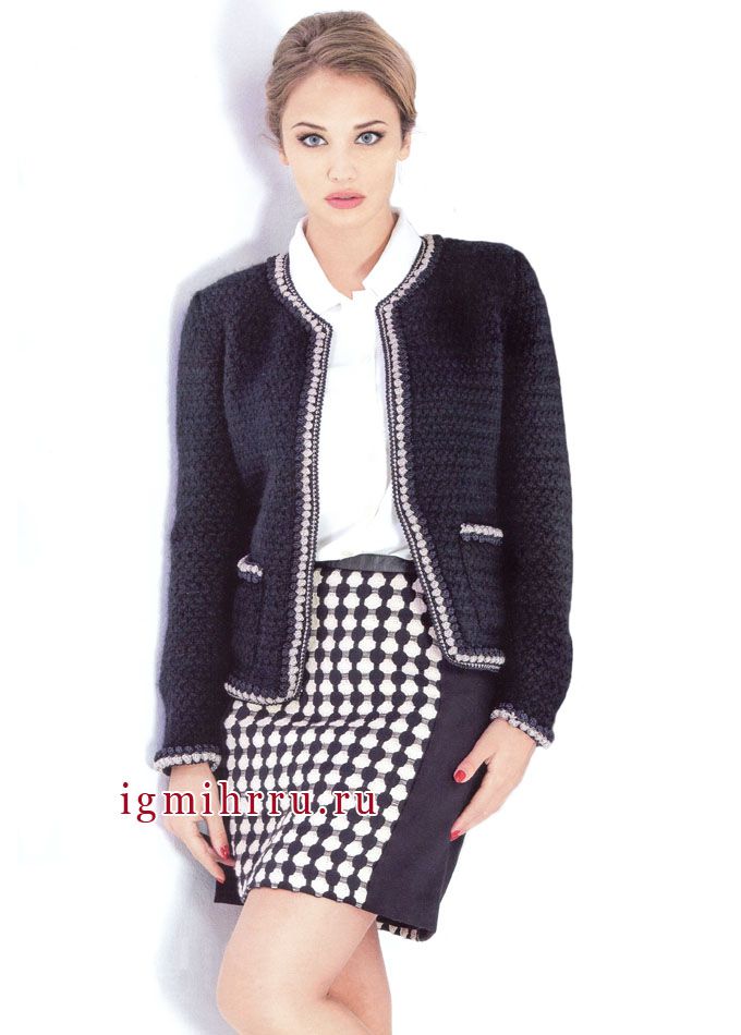 ЭЛЕГАНТНЫЙ ЧЕРНЫЙ ЖАКЕТ В СТИЛЕ ШАНЕЛЬ