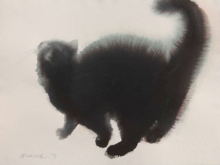 Потрясающие акварельные коты, вальяжно расплывающиеся по бумаге | Живопись | Арт