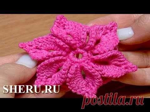 Вязаный цветок Урок 46 Цветок с лепестками украшенными пико