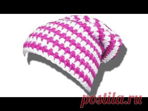 ▶ как связать крючком шапку - изменение цвета - © Woolpedia - YouTube