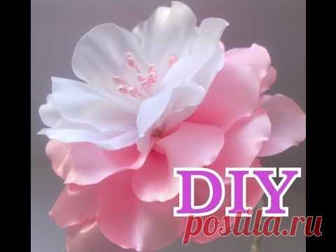 Цветок Канзаши Мастер Класс Своими Руками Flower Кanzashi Hand Made - нежный бело- розовый цветок) - YouTube