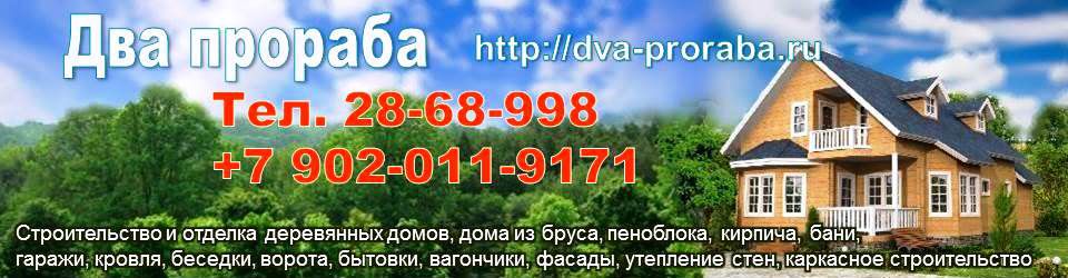 Услуги компании «Два прораба» Деревянные дома, в которых тепло зимой, а летом прохладно, всегда ценились на Руси, как самые удобные, практичные и комфортные. А современные дома из дерева еще и очень красивые благодаря уникальным высокопроизводительным технологиям и эффективным стильным материалам. Компания «Два прораба» производит строительство деревянных домов, дачных домиков и бань в г. Красноярске. Наша задача помочь Вам осуществить Вашу мечту соответственно Вашим потребностям.