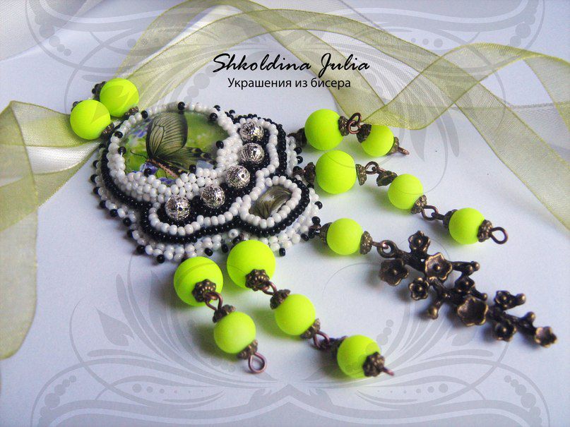 Кулон "Сон бабочки" (вышивка бисером, мастер-класс)